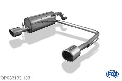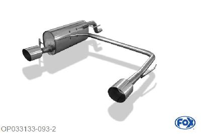OP033083-133, Opel Corsa D GSI 1.6l 110kW, Einddemper met uitgang rechts/links - 1x100mm Type 16 rechts/links 63,5mm Buisdiameter Geheel RVS, Absortie demper, mooie diepe sound, Met E-keur...