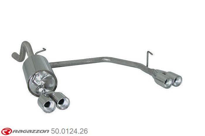 | Product omschrijving | : Stainless steel rear silencer left-right each with round tail pipe 2x80 mmCut and connection - The reduction for the installation on the original centre silencer is included. |