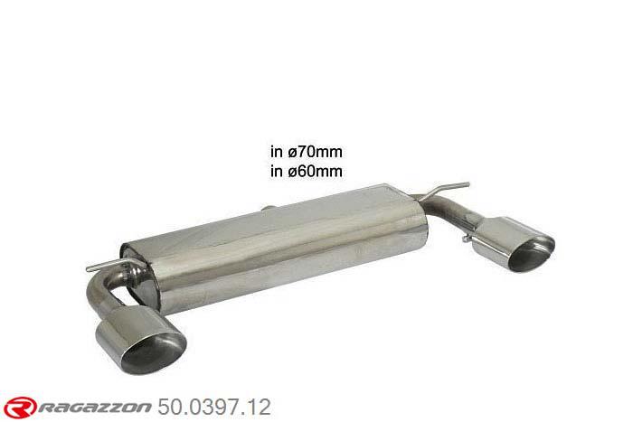 | Product omschrijving | : Stainless steel rear silencer left/right each with oval Sport Line tail pipe 135x90 mm - Oversized exhaust pipe diameter 70 mmCut and connection - The reduction for the installation on the original centre silencer is included. |