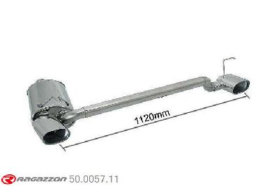 50.0012.11, Fiat Coupe (typ175) 2.0 20V Turbo (162kW) 1996-, Stainless steel rear silencer left-right each with oval tail pipe 128x80 mm - Straight exit under the original rear bumper exhaust nicheThe installation on the original centre silencer requires the adapter listed in the catalogue, which has to be ordered separately.????? pipe outer diameter 60mm...