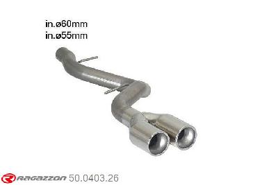 50.0164.52, BMW 3series E46 330xd (Sedan/Touring) - 330d(Sedan/Touring) - 330cd 135/150kW 1999-, Centre pipe group N + Stainless steel rear silencer with round Racing tail pipe 2x80 mm staggeredCut and connection.???? inner input diameter 50mm pipe outer diameter 50mm...