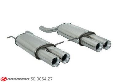 50.0064.27, BMW X5 (E53 / E70) E53 3.0D (135 kW) + Restyling 2001-02/2007, Stainless steel rear silencer left/right each with round tail pipe 2x90 mmCut and connection.???? inner input diameter 50mm pipe outer diameter 50mm...