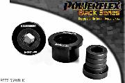 PFF5-5601BLK, BMW Z4 E85 and E86 (2003-2009) Front Wishbone Rear Bush, Aluminium Outer, PFF5-5601 is a high performance option to PFF5-4601, and aimed at offering greater precision for people wanting the very best from their E46 or Z4. This new part, fitted to the rear of the front wishbone has a hard anodised aluminium outer shell with one of our unique low friction polyurethane centre bushes. The poly/alu combination creates a low friction rotating bush reducing the forces acting on the arm. Lower arm deflection has been decreased by reducing the compliant material within the aluminium shell. Results are less movement in the arm under cornering and braking, improving steering control and feel. This bush is designed to fit the 66mm aluminium bush OE mounting bracket (BMW part 31126783376) Please ensure you have the correct size bush before fitting. 66mm, 2 stuk(s) benodigd per auto, 2 stuk(s) in verpakking, prijs per set van 2 stuk(s)