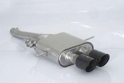 50.0508.55, Mini R59 Roadster Cooper S 1.6 (135kW) 2012-, Stainless steel rear silencer with round Carbon Racing tail pipe 2x90 mm?With vacuum operated valve including remote control.Cut and connection - The reduction for the installation on the original centre silencer is included.?, inner input diameter 60mm with reduction to 55mm pipe outer diameter 60mm...