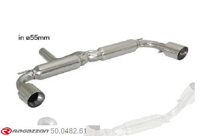 50.0509.60, Mini R59 Roadster JCW 1.6 (155kW) 2012-, Stainless steel rear silencer with round Sport Line tail pipe 2x90 mm??With vacuum operated valve including remote control.Cut and connection - The reduction for the installation on the original centre silencer is included.?, inner input diameter 60mm with reduction to 55mm pipe outer diameter 60mm...