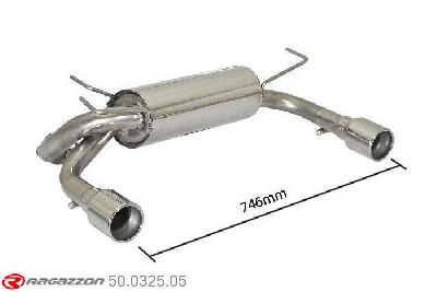 50.0408.25, Opel Adam 1.4 (74kW) 2013-, Stainless steel rear silencer left-right each with round tail pipe 2x70 mm staggeredCut and connection.????, inner input diameter 45mm pipe outer diameter 45mm...