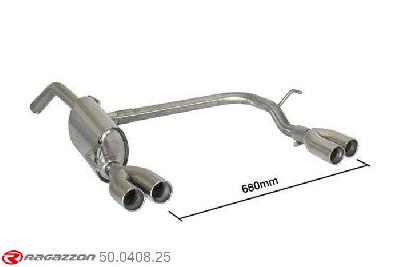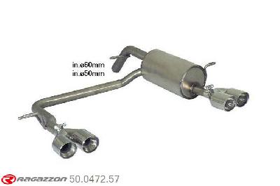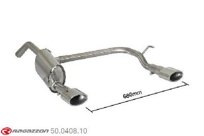 50.0472.57, Peugeot 208 1.6GTi (147kW) 2013-, Stainless steel rear silencer left-right each with round Sport Line tail pipe 2x80 mm staggered - Original rear bumper modification is requiredCut and connection - The reduction for the installation on the original centre silencer is included.?, inner input diameter 60mm with reduction to 50mm pipe outer diameter 60mm...