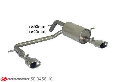 50.0458.10, Peugeot 208 1.6VTi (88kW) 2012-, Stainless steel rear silencer left-right each with oval tail pipe 115x70 mm - Original rear bumper modification is requiredCut and connection - The reduction for the installation on the original centre silencer is included.?, inner input diameter 50mm with reduction to 45mm pipe outer diameter 50mm...