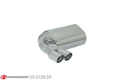 50.0155.26, Audi A3 (typ 8P) 2003-2012 A3 Sportback 1.6i (75kW) - 1.6 FSI (85kW) - 2.0 FSI (110kW) 09/2004-, Stainless steel rear silencer with round tail pipe 2x80 mm staggeredCut and connection - The reduction for the installation on the original centre silencer is included.? inner input diameter 55mm with reduction to 50mm pipe outer diameter 60mm...