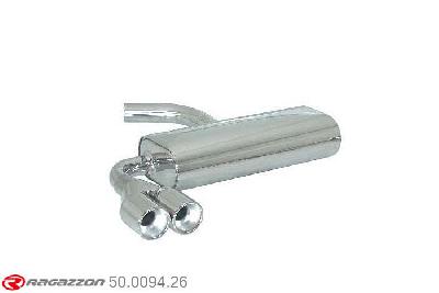 50.0094.26, VW Golf V 1.6i (75kW) - 1.6 FSI (85kW) - 2.0 FSI (110kW) 05/2003-, Stainless steel rear silencer with round tail pipe 2x80 mmCut and connection - The reduction for the installation on the original centre silencer is included.? inner input diameter 55mm with reduction to 50mm pipe outer diameter 60mm...
