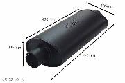U326340, demper Big ovaal 115/185, Lengte 420mm, 63,5mm (2,5 inch), Staal, Universeel, Simons, 63,5mm (2,5 inch) binnendiameter, klem verbinding (wordt geleverd zonder klem)