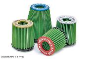 115mm aansluitdiameter, GRCO1.115, Green Luchtfilter universeel, Powerflow conisch, Lengte filter 150mm, Buitendiameter onder 150mm, Buitendiameter kap 120mm, Goud geannodiseerde kap, centraal