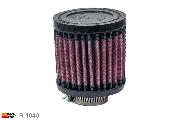 27mm aansluitdiameter, R-1040, K&N Luchtfilter Universeel, Cilindrisch, Lengte filter 76mm, Buitendiameter onder 76mm, Buitendiameter kap 76mm, Rubber kap, Lengte flens 16mm, 0 mm