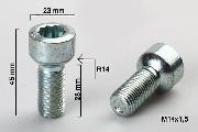 M14x1,5, Wielbout radius inbus, Draadlengte 28mm, 23mm kopdiameter